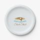 Um design brilhante com uma pilha curta de panquecas com xarope de bordo e uma parte de manteiga no topo.