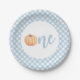 Nossa pequena xadrez azul pastel de abóbora, primeira placa de papel festa de aniversário.