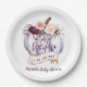 Uma pequena abóbora cai pratos de papel de chá de fraldas em roxo e pêssego. Com belas design de floral, folhagem e abóbora. Design de outono/outono ideal. Adequado para um chá de fraldas neutro em termos de gênero.