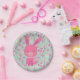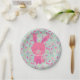 Itens de design cor-de-rosa para Bunnies e Flores para casa, escritório e uso pessoal, incluindo mousepads, espelhos compactos, carteiras, relógios, conselhos de apagar a seco, auto-falantes e muitos outros itens. Possui flores bonito de rosa, branco e amarelo em um fundo azul com um coelho rosa brilhante!