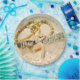 O Elegante Pearls and Lace design apresenta a imagem de um lugar delicado, pérolas e uma lona azul, criando uma aparência delicada como pano de fundo aos nomes do casal de casamento, juntamente com a data do casamento em letras douradas que aparece ao longo da fronteira da design.