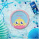 Festa bonita fornece placas de papel com um pintinho de bebê bonito com fita rosa saindo de um ovo rosa dizendo amor na bolha de fala. Uma fronteira de bolinhas rodeia o prato. Personalize facilmente com os modelos de texto fornecidos. Algumas cores podem ser alteradas no modo de personalização.