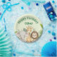 Celebrate your little explorer's special day with these adorable personalized safari-themed paper plates! Featuring a sweet watercolor illustration of a baby elephant, giraffe, and lion cub set against a leafy green background. Customize the "Happy Birthday" text with your child's name.