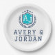 Prato De Papel Personalized wite blue Monogram Wedding