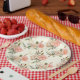 Prato De Papel Pêssegos e placas de papel creme