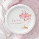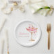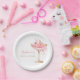 Pratos de papel Pétalas de Ouro Rosa e Chuveiro de Flores de Prosecco para Noiva apresentam um copo de prosecco dourado e rosa adornado com delicadas flores e pétalas cor-de-rosa. O design é perfeito para um brunch temático Pétalas e Prosecco e celebração cheia de estilo. Com letra de caligrafia elegante e detalhes florais rosa elegantes.