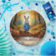 Peter na sua jaqueta azul com uma cesta de ovos de Páscoa saudando Felzs pascoa em texto decorativo