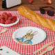 Prato De Papel Peter, o coelho sentado num Pote