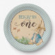 Celebre o Primeiro Aniversário do seu filho com estes doces pratos de papel azul listrados de Peter Rabbit.