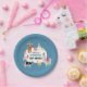 A hand drawn cute blue petting zoo party animals design featuring illustrations of a goat, goose, hamster, llama, pig, baby chick, cow and rabbit . A beautiful petting zoo themed design ideal for kids petting zoo themed birthday parties. Customize this cute petting zoo animals birthday paper plate and make it your own!