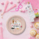 A hand drawn cute petting zoo party animals design featuring illustrations of a goat, goose, hamster, llama, pig, baby chick, cow and rabbit . A beautiful petting zoo themed design ideal for kids petting zoo themed birthday parties. Customize this cute petting zoo animals birthday party plate and make it your own!