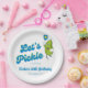 Placas de papel divertidas para a próxima festa de piquete. Design apresenta um picle de desenho engraçado segurando um Pickleball Paddle e uma fonte legal que lê "Pickle de Vamos" Adicione facilmente seu texto personalizado e altere a cor do plano de fundo. Excelente para festa de aniversário de picleball de um adulto ou criança, reunião de fim de semana de picleball, fuga, festa de pileball ou diversão diária. Pickleball - o melhor esporte de sempre!!