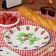 Placas de piquenique de verão... lindos morangos para um dia de verão.