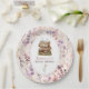Estes pratos de papel floral doce são para um evento de chá de noiva, com o tema 'Novo capítulo'. O prato apresenta ilustrações de uma pilha de livros decorados com flores em aquarela e o fundo é de flores silvestres da primavera em cores suaves. Fonte de estilo de texto inglês antigo clássico para uma sensação de livros de ilustração de crianças antigos. Ótimo para uma noiva que ama livros.