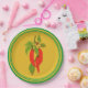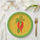 Prato De Papel Pimentos vermelhos em papel no fundo da mostarda