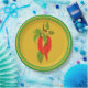 Pimentos pimentões quentes sobre fundo de mostarda. Estilo mexicano. Perfeito para a festa onde a comida mexicana é servida. Três anéis verdes de fronteira. Pimentos com folhas verdes em videira com flor pequena.