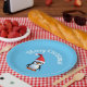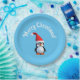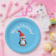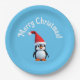 Um bebê pinguim muito bonito vestindo um chapéu de Papai Noel.