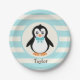 Prato De Papel Pinguim Bonito com Turquoise Bowtie