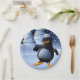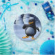Renderização digital em 3D de um pinguim dançante bonito vestindo um chapéu marinheiro em um fundo de paisagem de inverno