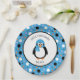 Prato De Papel Pinguim giro com chapéu azul e pontos de polca esc