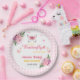 This enchanting designs paper plates for your baby shower party. Features cute "A Little Butterfly Is On The Way" theme of pink ribbon Butterflies and watercolor flowers in shades of pink and light purple on pink gingham pattern with elegant script typography. Customise it for your baby shower, by adding your own text.