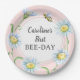 Prato De Papel Pink Bee-Day Birthday Paper Plates with Daisies