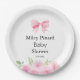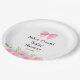 Serve your shower treats or lunch meals on these amazing baby shower party plates. The design features a pink bow at the top, while the center allows you to add your personalized touch. At the bottom sits a lovely watercolor pink floral. These plates will surely bring a touch of happiness and excitement to your dessert table or brunch buffet as you celebrate the new arrival.