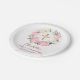 A white background, decorated with watercolored pink and ivory flowers in a wreath and a golden cross. A pink bow. Personalize and add the name and date.