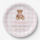 Pink Gingham Teddy Bear Beary First Birthday Paper Plates