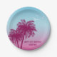Prato De Papel Pink Palm Trees Tropical Evening Happy Birthday
