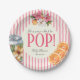 Get ready to celebrate with these adorable 'POP!' baby shower paper plates! Featuring a whimsical illustration of a tropical floral-adorned soda can and refreshing citrus slices, this design is both unique and festive. The playful text announcing 'Shannon's about to POP!' is set against a charming pink and cream striped background. These plates are a perfect way to serve guests and enhance your baby shower's festive atmosphere.
