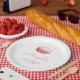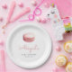 These cute baby shower paper plates feature a watercolor image of a pink French macaron cookie. Add the name of the mother-to-be in whimsical pink handwriting script, along with the date in charcoal gray sans serif font. Ideal for a girl's baby shower.