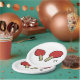 Dois morcegos de mesa e uma bola. Este design parece realmente eficaz nestas placas de papel