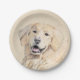 Prato De Papel Pintura do ouro Retriever - Arte Cachorra Original