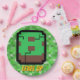 There are so many great pixelated 8 bit style building games and this pays tribute to them. The design features fun greens and would be great for any block-building game fans you know. We have other coordinating designs also available. gamer birthday paper plates gaming birthday paper plates , ps5 birthday paper plates , gamer paper plates , game night birthday paper plates, video game truck birthday paper plates , level up birthday paper plates , gamer baby paper plates, game truck birthday paper plates