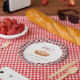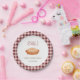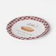 Reúna seu aniversário de torta com esses pratos personalizados de gingham vermelho.