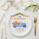 Estas placas de papel adoráveis com um caminhão azul com aquarela carregado com abóboras de queda, confete brilhante, o nome do novo bebê e a data de vencimento do bebê são perfeitas para o seu chá de fraldas de outono. O seu doce design é tradicional, mas moderno. Selecione Personalizar esta modelo para torná-las exclusivas suas. Em segundos, você verá seu filho super fofo, chá de fraldas de 9" em papel.