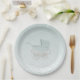 Placa de papel de chá de fraldas brilhante e moderna, feita em verde-menta com brilho sujo. Gráficos de uma carruagem de bebê, verde, com hortelã brilho, decoram o meio da placa. Personalize para adicionar qualquer texto que você quiser.