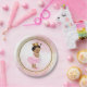 Chá de fraldas pratos de papel princesa com uma adorável menina princesa vestindo um tutu rosa bonito e uma corda de pérolas e coroa dourada em um lindo fundo rosa e dourado. Essas princesas bonitas princesas, chás de fraldas de papel, são facilmente personalizadas com texto.