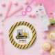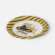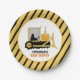 A chapa apresenta um tema de construção, uma faixa preta e amarela com uma borda laranja e uma escavadora no meio. Personalize o texto com seus próprios detalhes ou exclua para usar sem texto. Excelente para um chá de fraldas ou festa de aniversário do tema da construção!