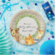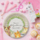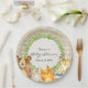 Esta placa de papel de chá de fraldas apresenta adoráveis animais de floresta e um padrão de latido leve. Adicione sua personalização usando o formulário modelo. Todo o texto é editável.