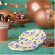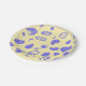 Esta placa de papel é cheia de lavandas circulares divertidas e manchas em um fundo branco amarelado vibrante.