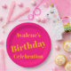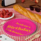 Um design de revelação com fundo rosa vibrante com texto laranja em negrito. Essa combinação de cores cria um contraste impressionante, ideal para chamar a atenção para mensagens importantes, anúncios ou gráficos digitais.