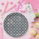 Tamanho e estilo: Placa de Papel Redonda de 9" Joga uma festa espetacular com placas de papel totalmente personalizáveis para corresponder ao seu tema! Cada conjunto de placas de papel é impresso em estoque de papel durável e decorado com seus designs ou fotos personalizados. Estas placas são perfeitas para servir janto, aperitivos ou saladas. Peça isso com nossos guardanapos de papel para um conjunto completo de panfletos de festas que seus hóspedes vão amar! Dimensões: Compatível com FDA de 9" de diâmetro para Excelente de segurança de contato de comida para servir jantadas, almoços, aperitivos ou saladas Impressas nos EUA
