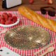 Conjunto de oito placas de papel de 9" com uma imagem de uma bola de disco espelhada de ouro deslumbrante. Consulte porta copos correspondente. Veja toda a coleção Disco 70s Plate na COMIDA/BEV | Seção pratos.
