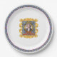 Celebre Beethoven! De uma série de arte original de ZoeSPEAK de placas de coleção de música clássica, essas placas de papel apresentam um retrato do compositor Ludwig van Beethoven. O retrato é uma gravura manuscrita, rodeada por uma ilustração de um quadro de ouro oval de ornamentado. O quadro está sobre um fundo de papel de parede de sóis amarelos e espíritos alados que se elevam contra um azul médio. Sob o retrato, em vermelho, está o nome do compositor. O papel de parede é cercado por mais fitas douradas, no centro da placa contra um fundo branco. Há uma banda azul média com espíritos alados e uma borda vermelha ao redor da borda da placa.