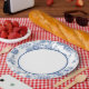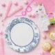 Placa de papel azul e branco elegante para vovó costeira, chinoiserie, ou casamento ou festa de tema azul e branco.