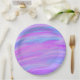 Apresenta um design pintado de cor rosa, roxo e turquesa.