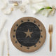 Esta Placa de Papel Primitivo em Estrelas com estrelas primitivas e um papel antigo e o fundo de madeira preta são perfeitos para as suas festas primitivas ou por país.