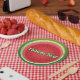 Fundo da fatia de melancia vermelha. Texto personalizado.
